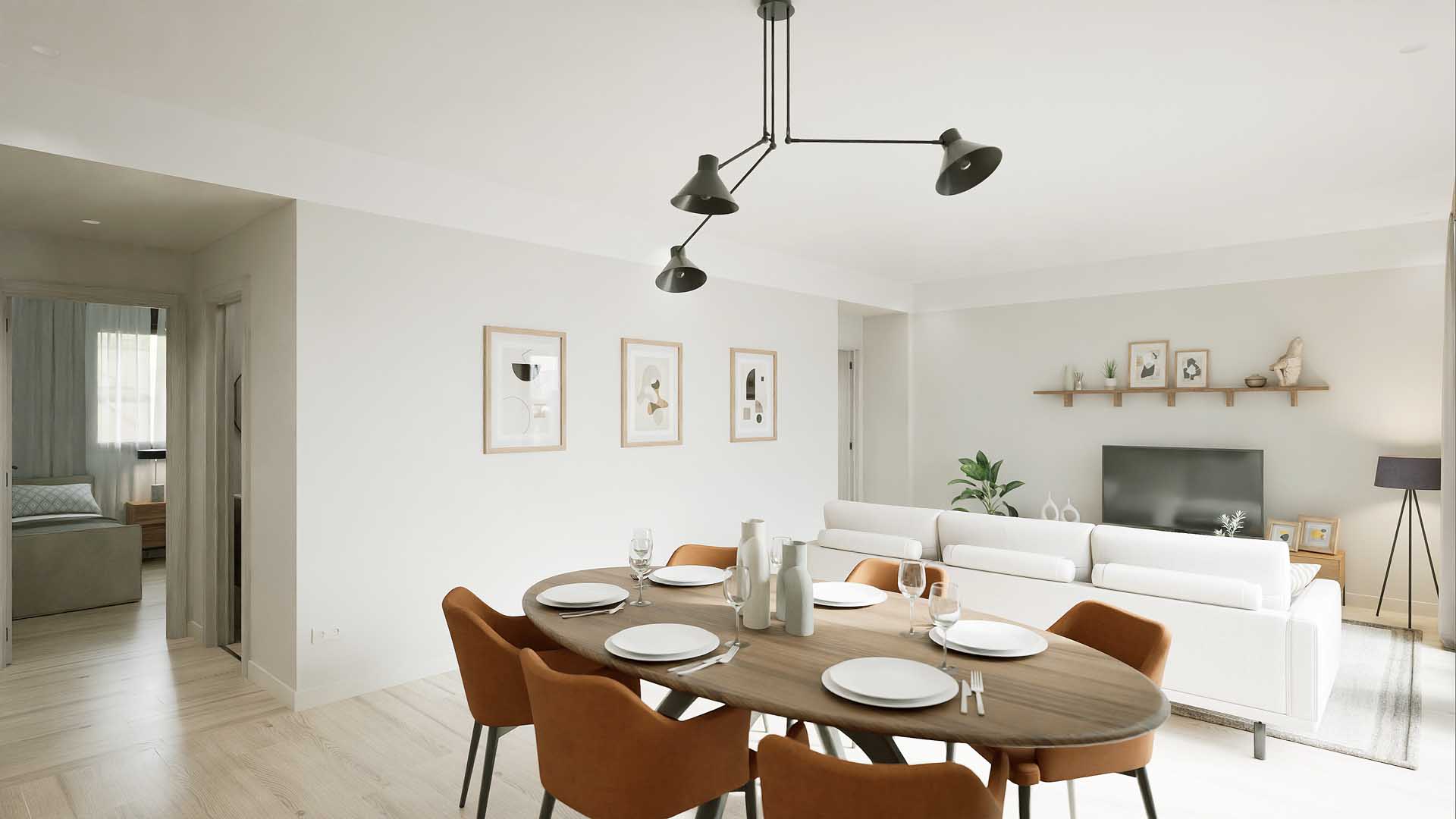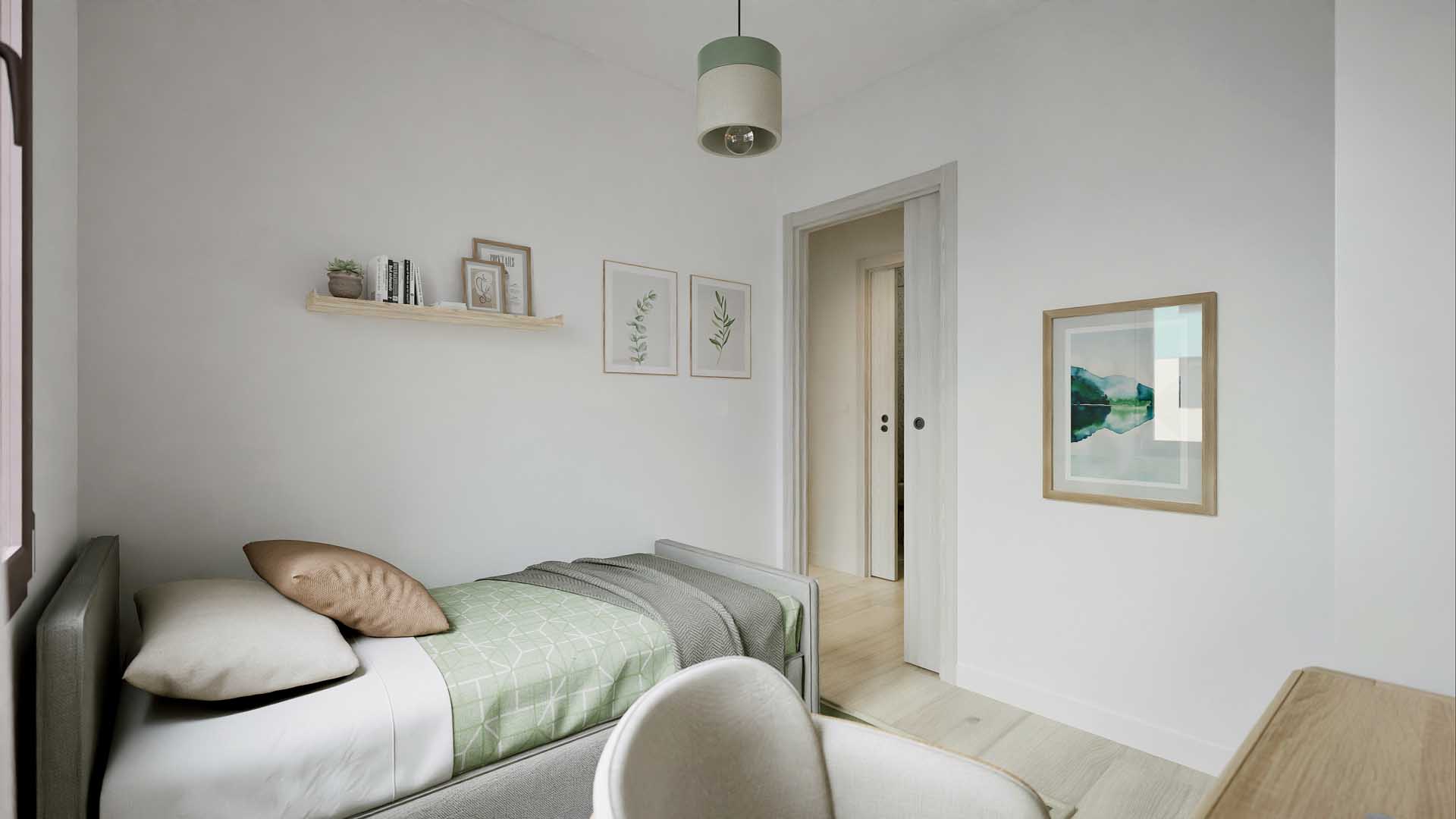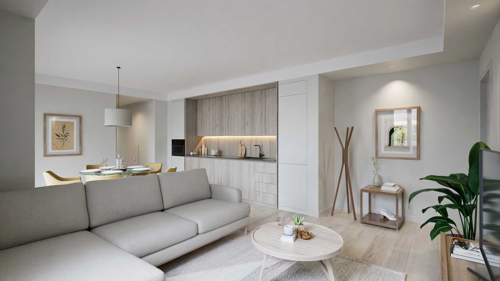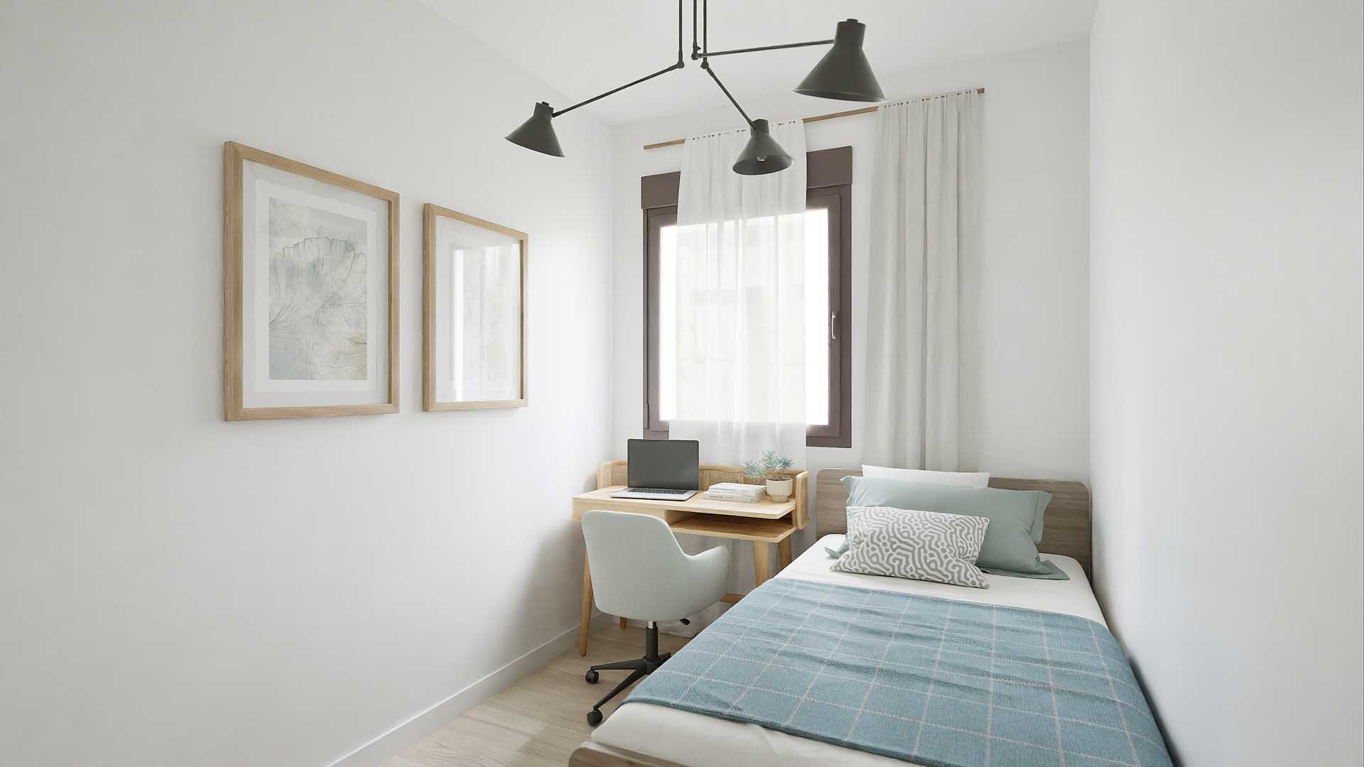 Las viviendas constan de 3 y 4 dormitorios, cocinas abiertas al salón-comedor y dos baños por vivienda. Cada vivienda aprovecha al máximo el espacio con pasillos mínimos y distribuciones eficientes. Las estancias son amplias y destaca la iluminación natural. Todas las viviendas disponen de amplias terrazas, aunque las viviendas de planta baja y áticos ofrecen terrazas aún más amplias con vistas despejadas.