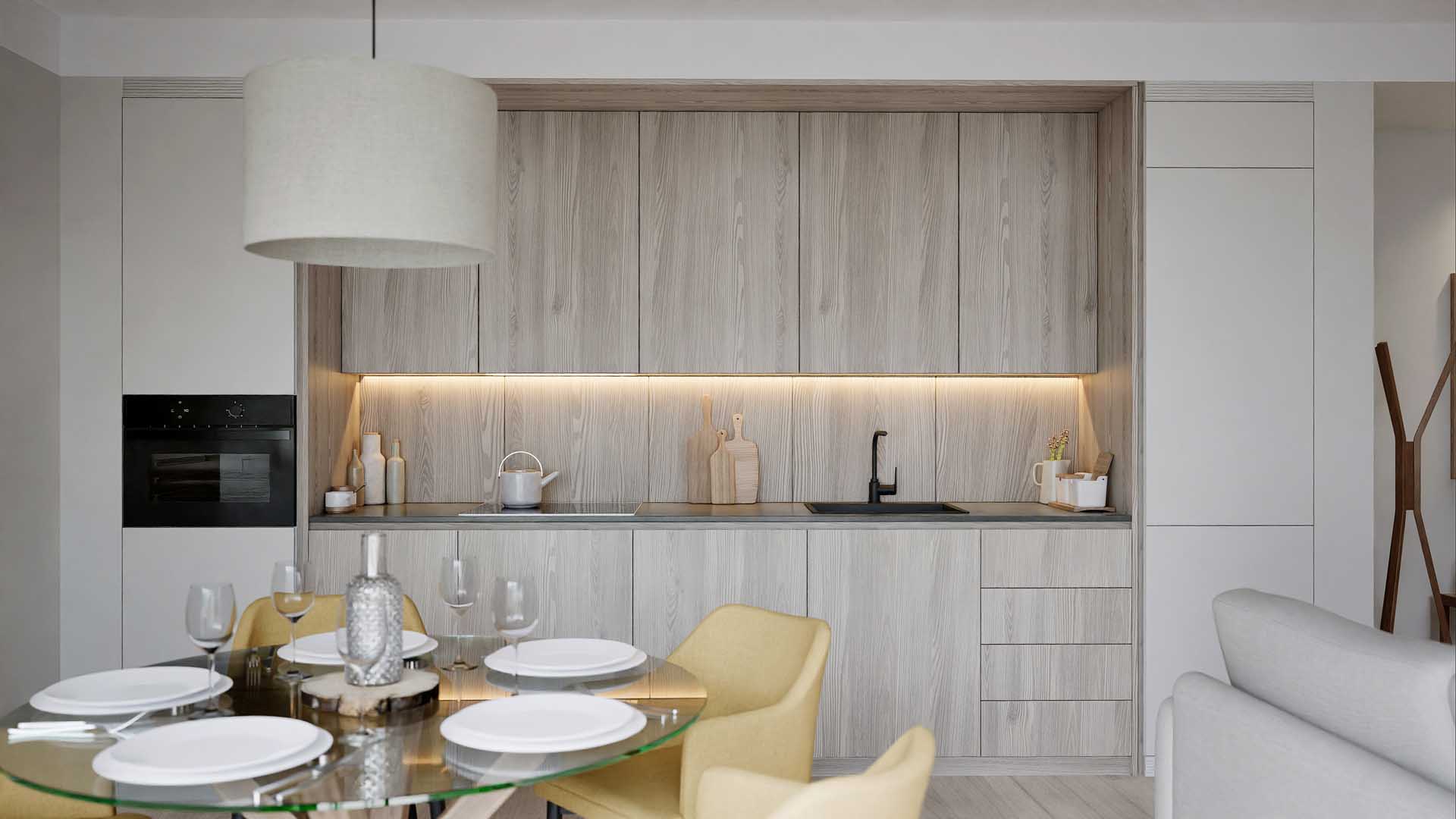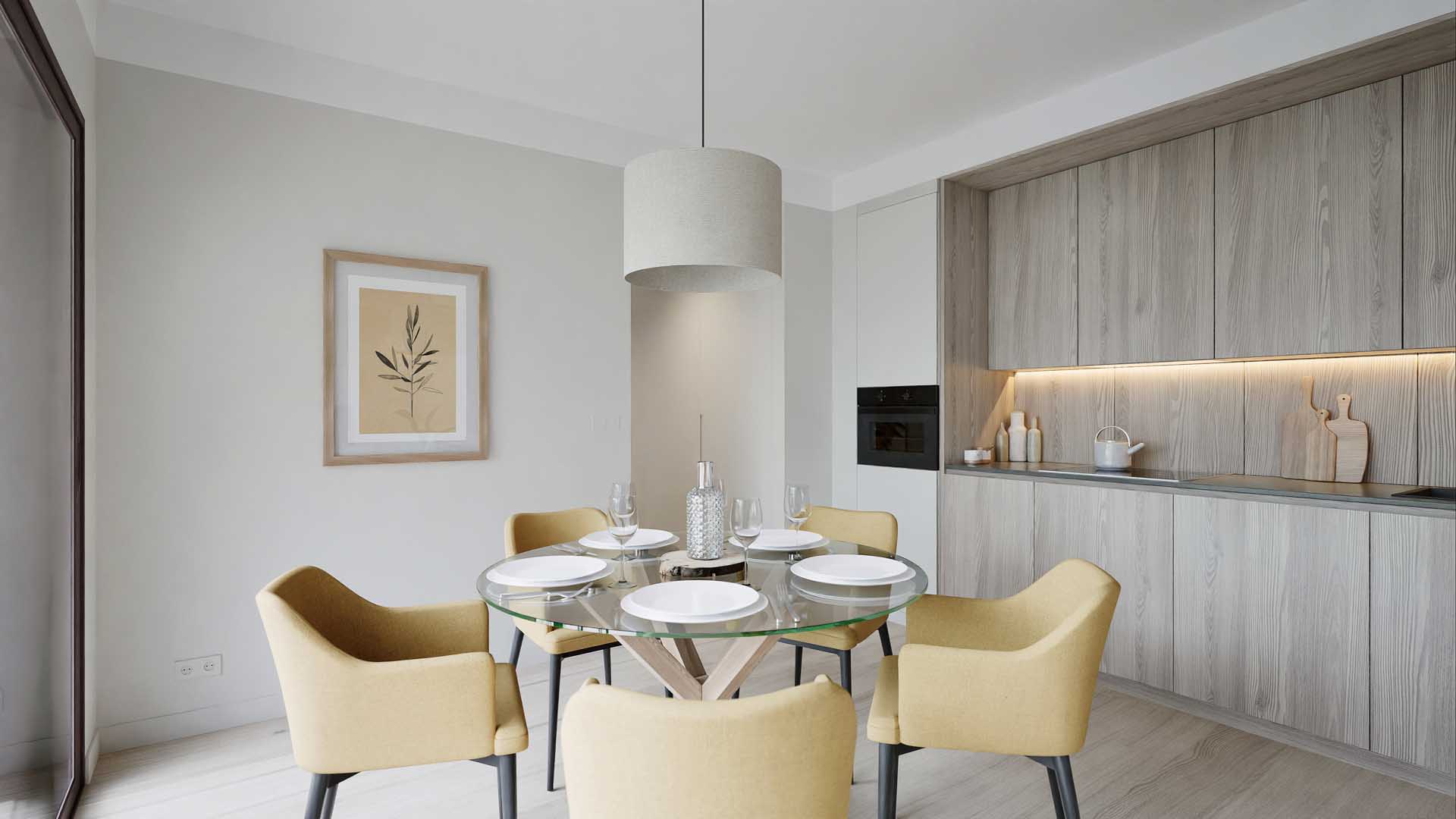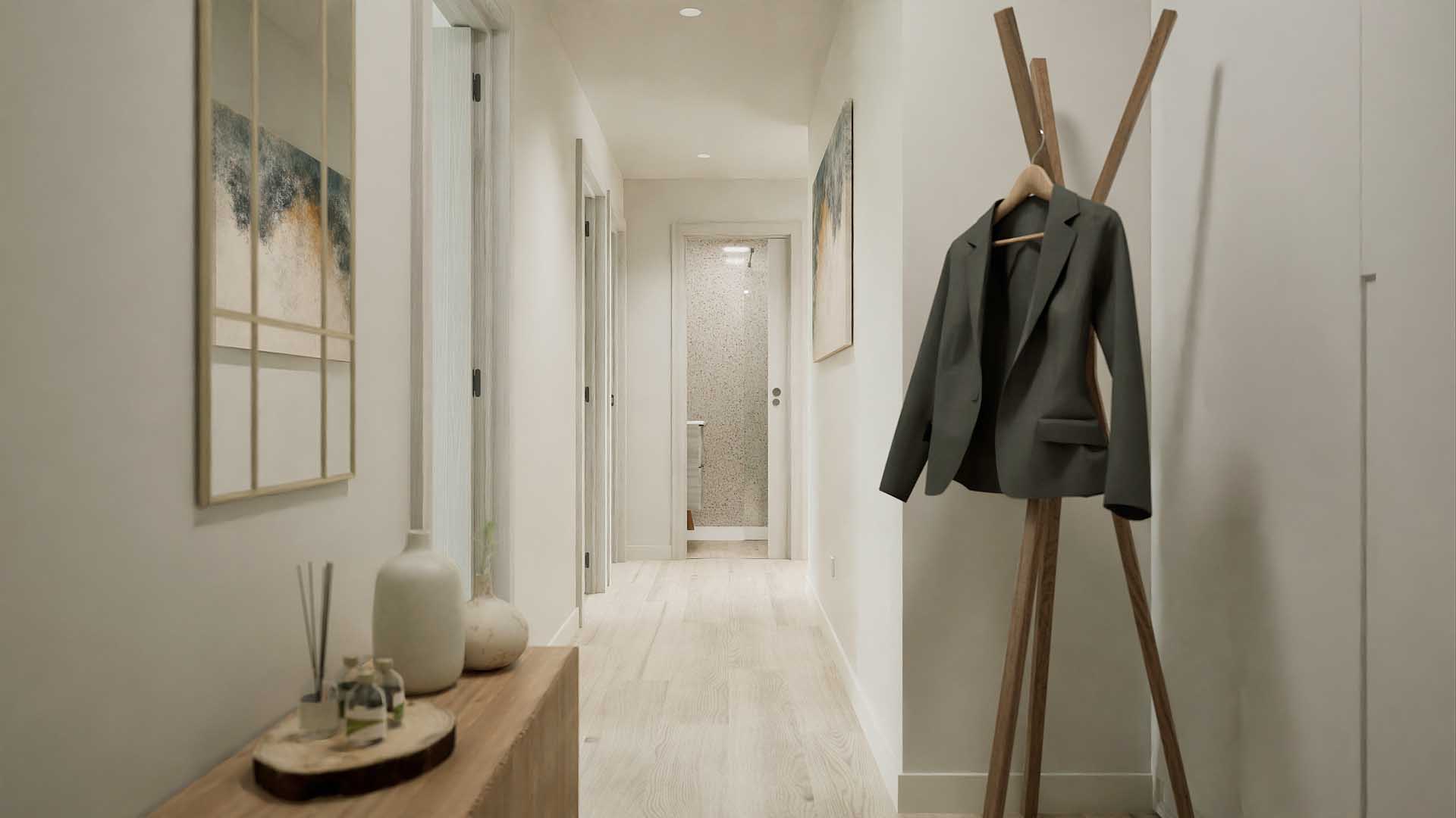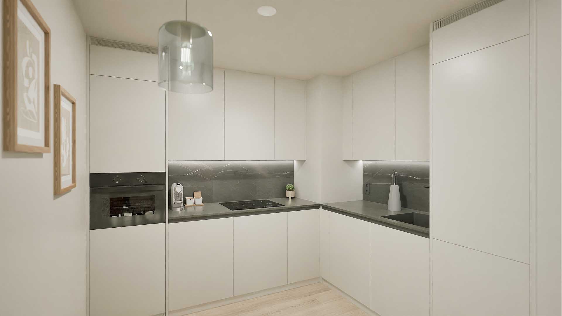 Las viviendas constan de 3 y 4 dormitorios, cocinas abiertas al salón-comedor y dos baños por vivienda. Cada vivienda aprovecha al máximo el espacio con pasillos mínimos y distribuciones eficientes. Las estancias son amplias y destaca la iluminación natural. Todas las viviendas disponen de amplias terrazas, aunque las viviendas de planta baja y áticos ofrecen terrazas aún más amplias con vistas despejadas.