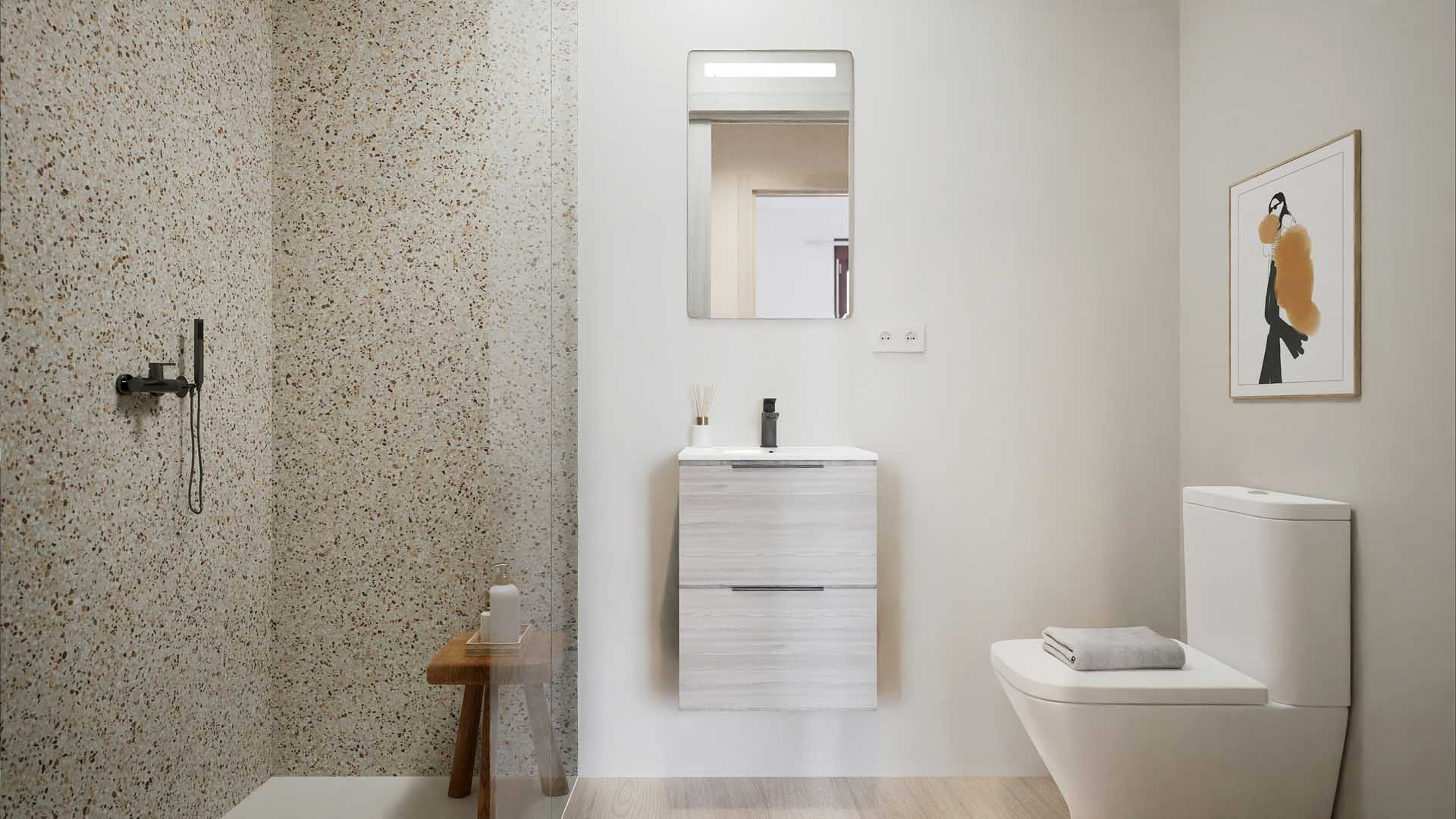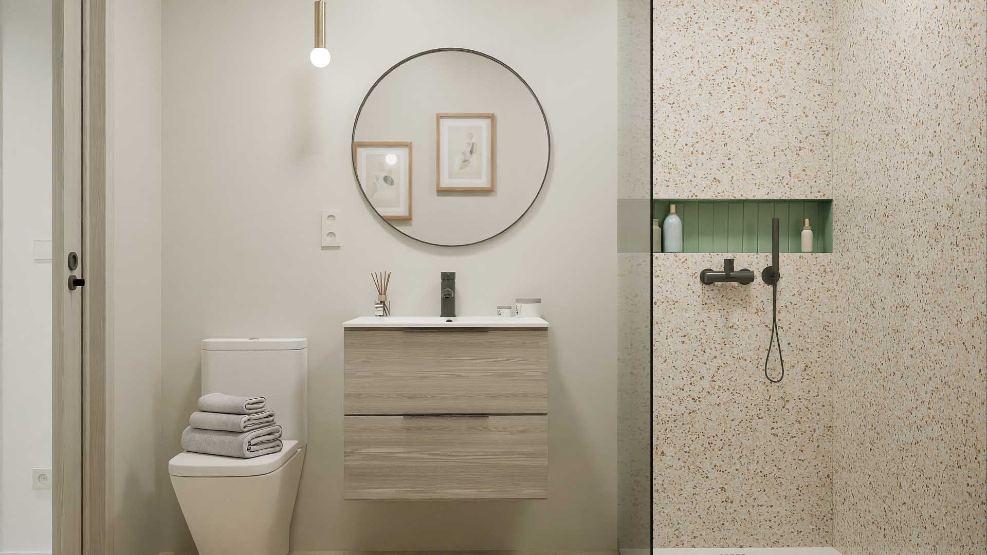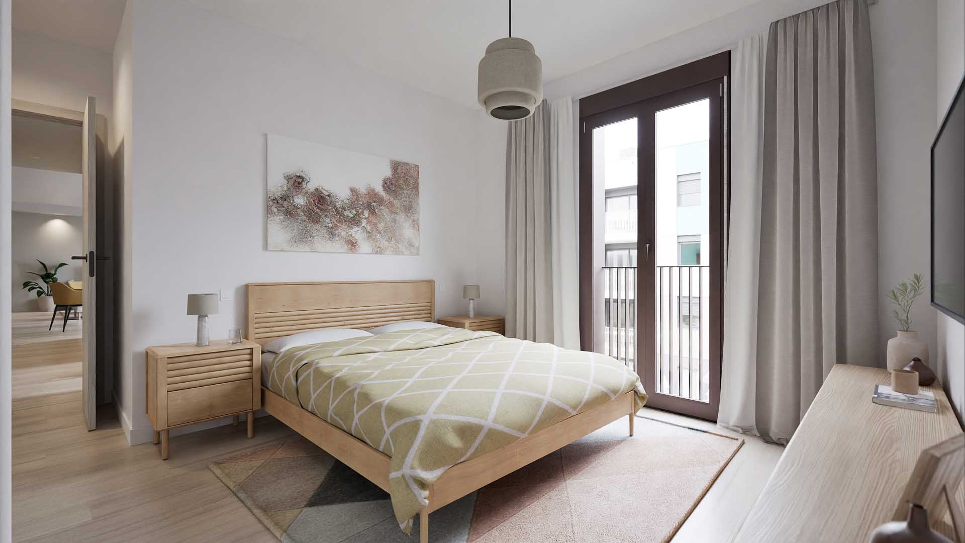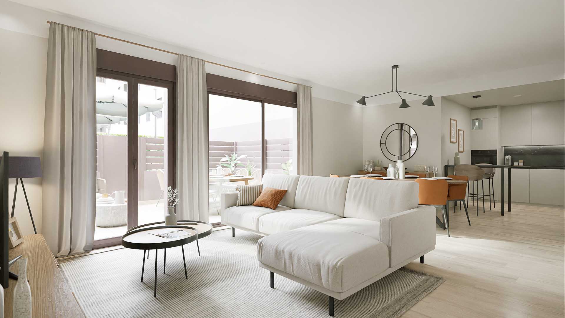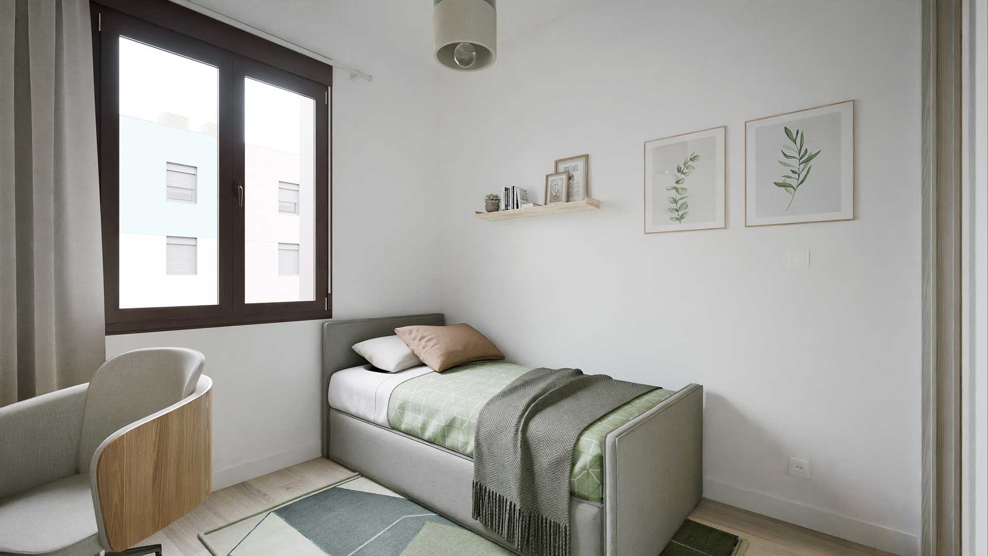 ** Las imágenes no son contractuales y meramente ilustrativas sujetas a modificaciones de orden técnico, jurídico o comercial de la dirección facultativa o autoridad competente. Las infografías de las fachadas, elementos comunes y restantes espacios son orientativas y podrán ser objeto de verificación o modificación en los proyectos técnicos. El mobiliario de las infografías interiores no está incluido y el equipamiento de las viviendas será el indicado en la correspondiente memoria de calidades. Toda la información y entrega de documentación se hará según lo establecido en el Real Decreto 515/1989 y demás normas que pudieran complementarlo, ya sean de carácter estatal o autonómico.